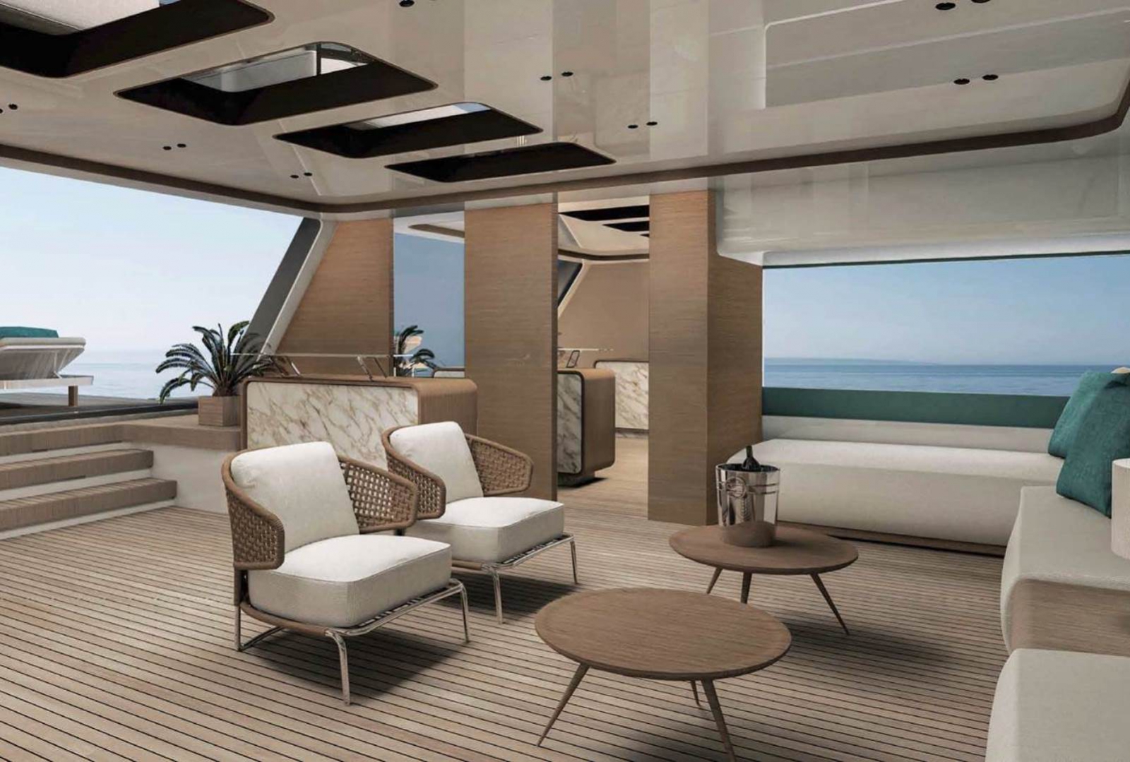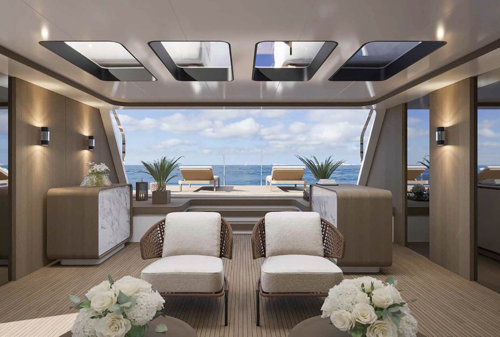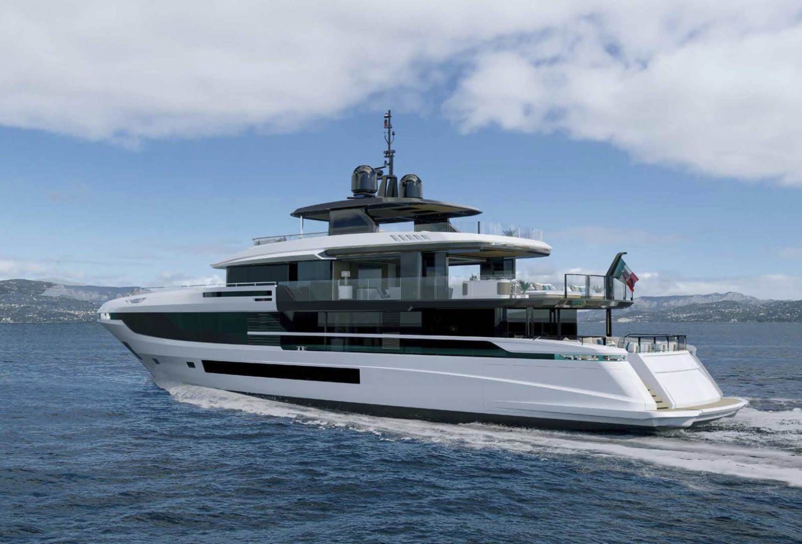 This Oceano 44 yacht has an exterior design by Alberto Mancini / Overmarine Group.