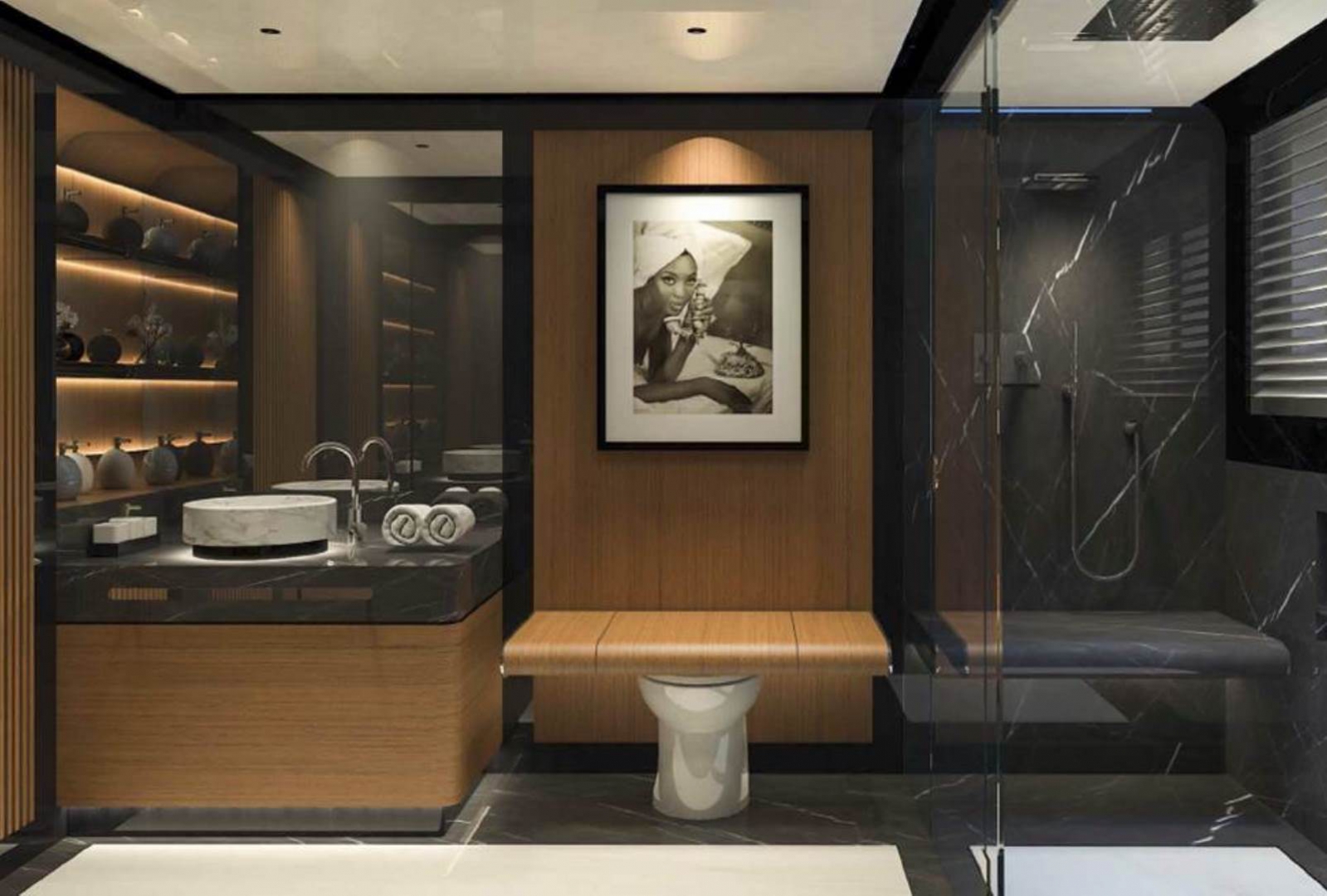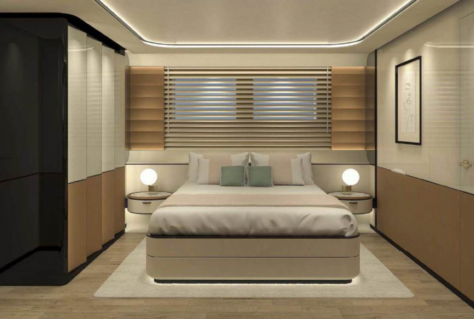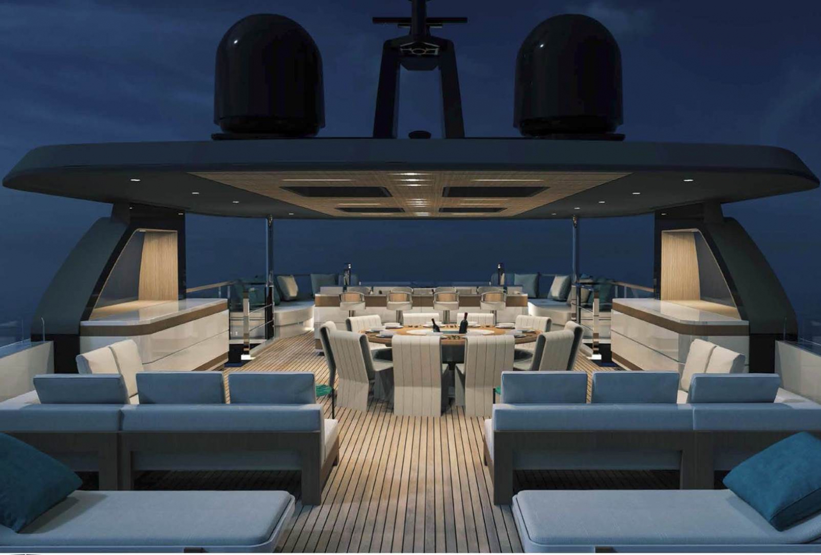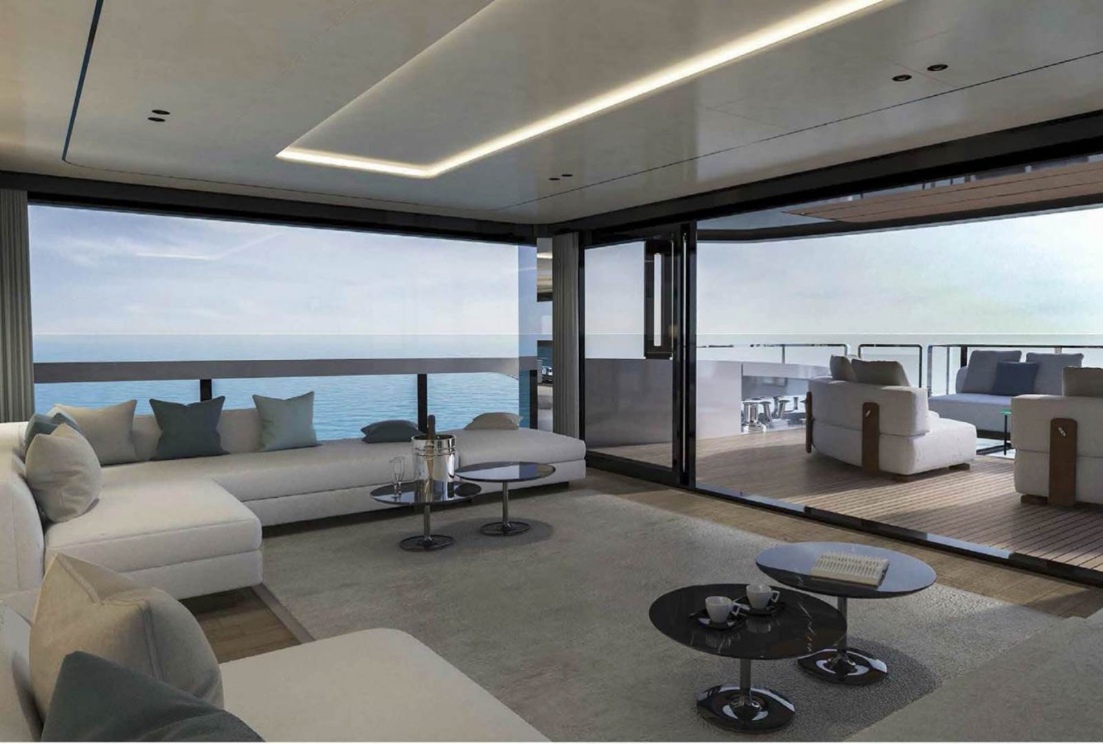 This Mangusta Oceano 44 yacht is equipped with 2 x 1700 HP (16V2000 M86) MTU engines. The yacht will have a maximum speed of 16 knots and an atlantic range of 4500 nautical miles at 11 knots.